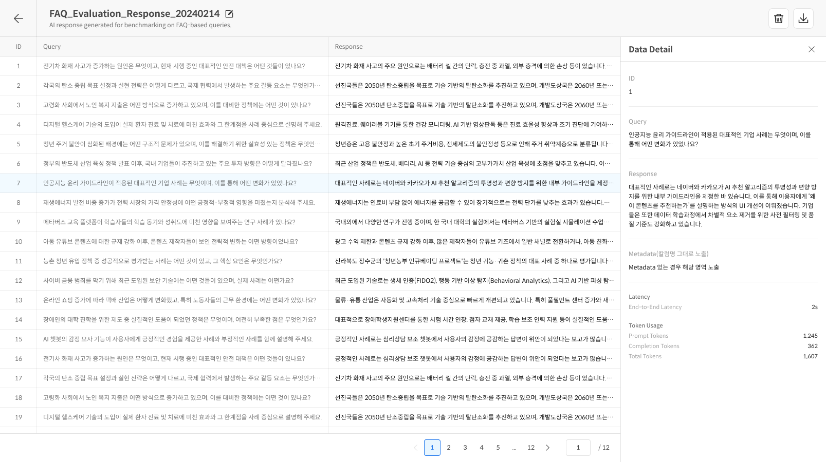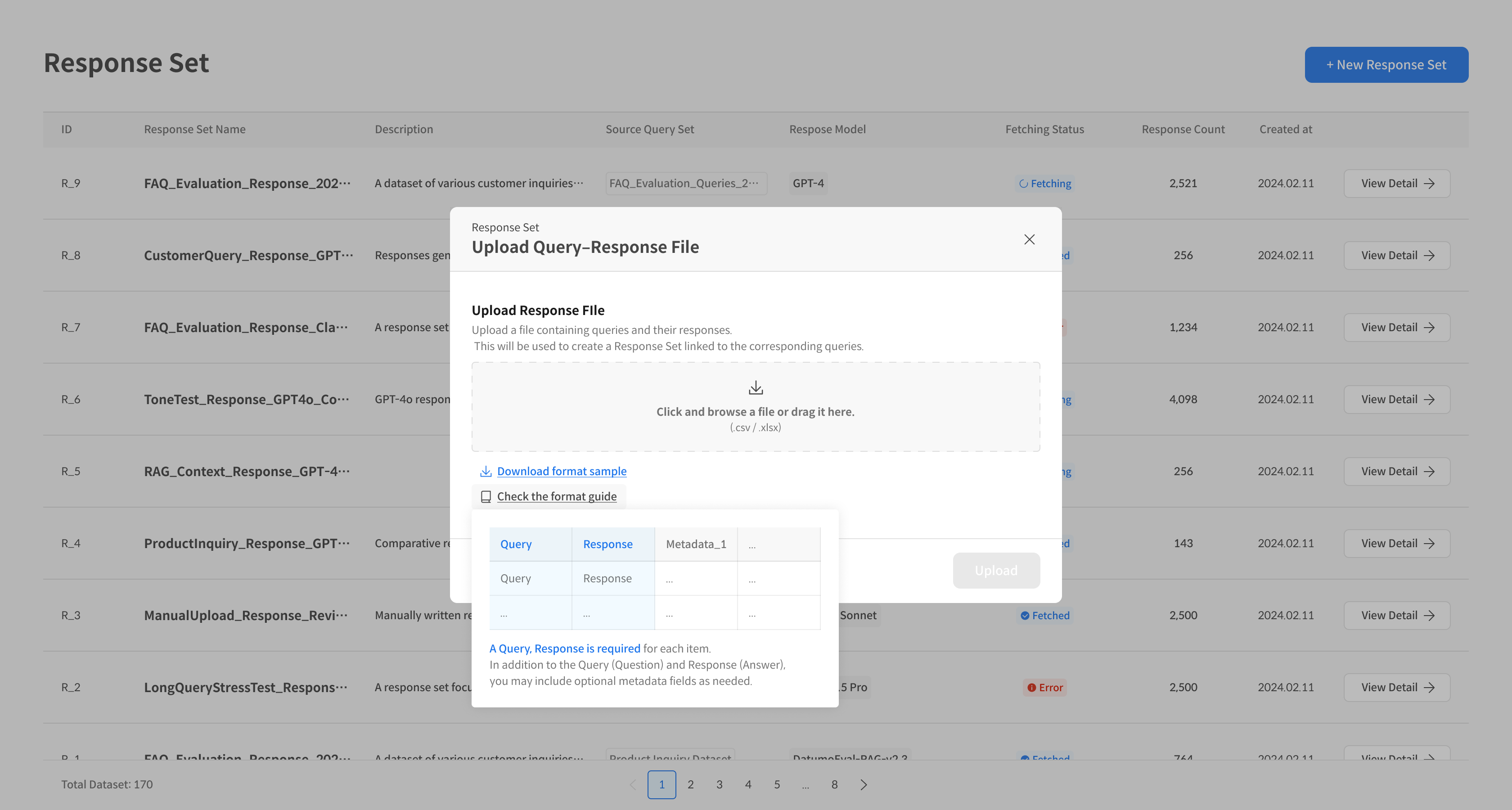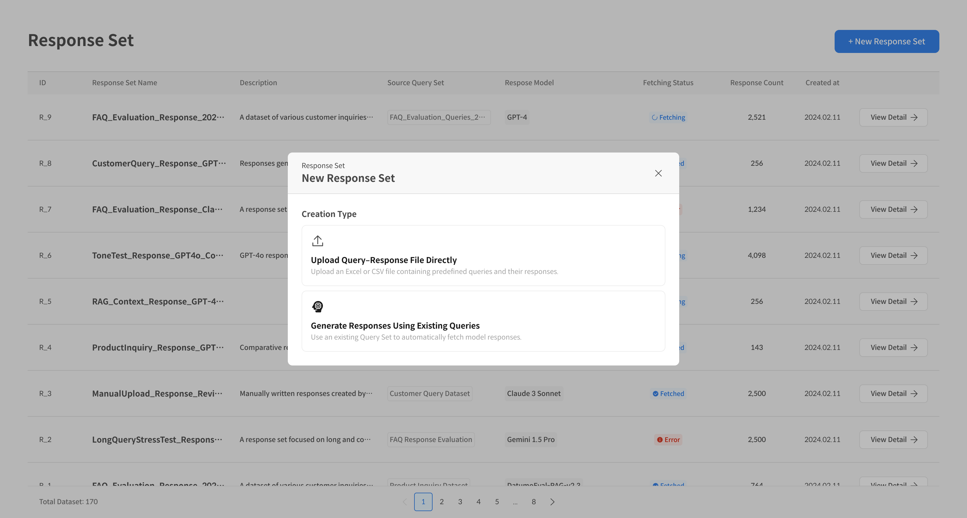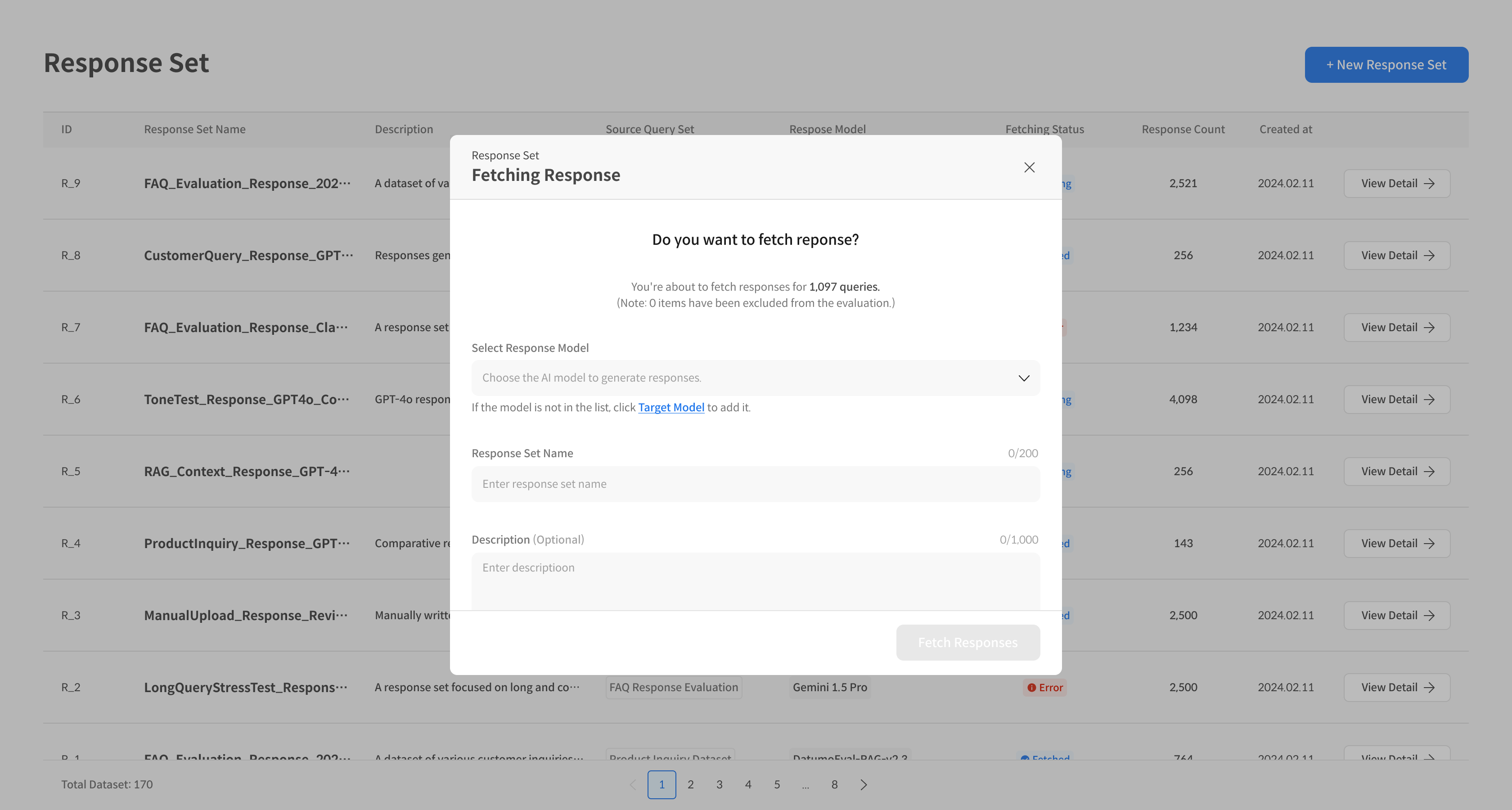 - Query Set을 선택하여 AI 모델이 자동으로 Response 생성