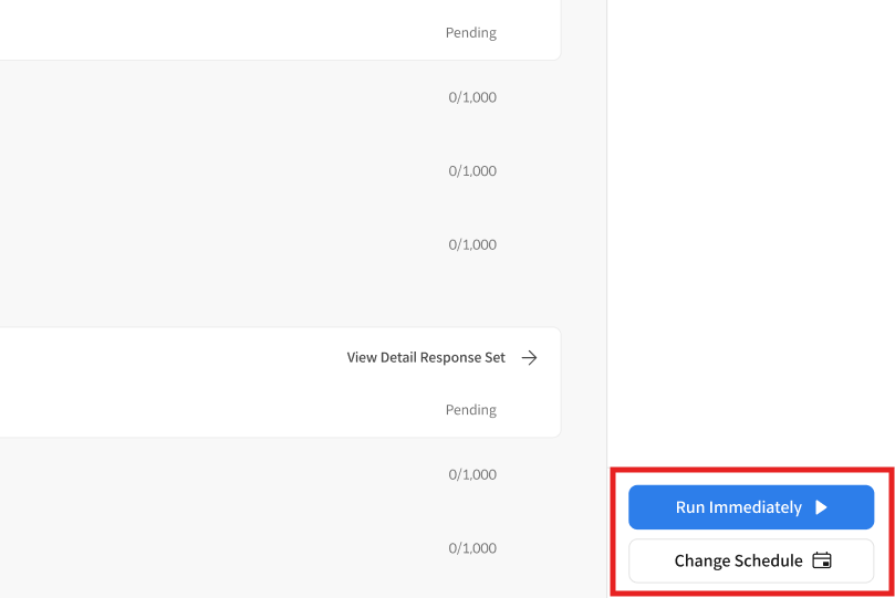 예약된 평가 Task는 Evaluation Set 상세 화면 우측 하단에서 관리할 수 있습니다.