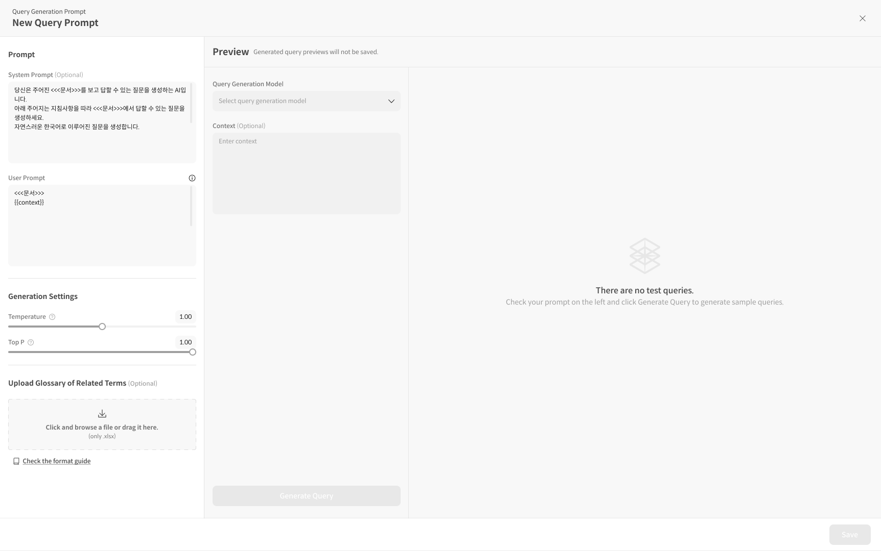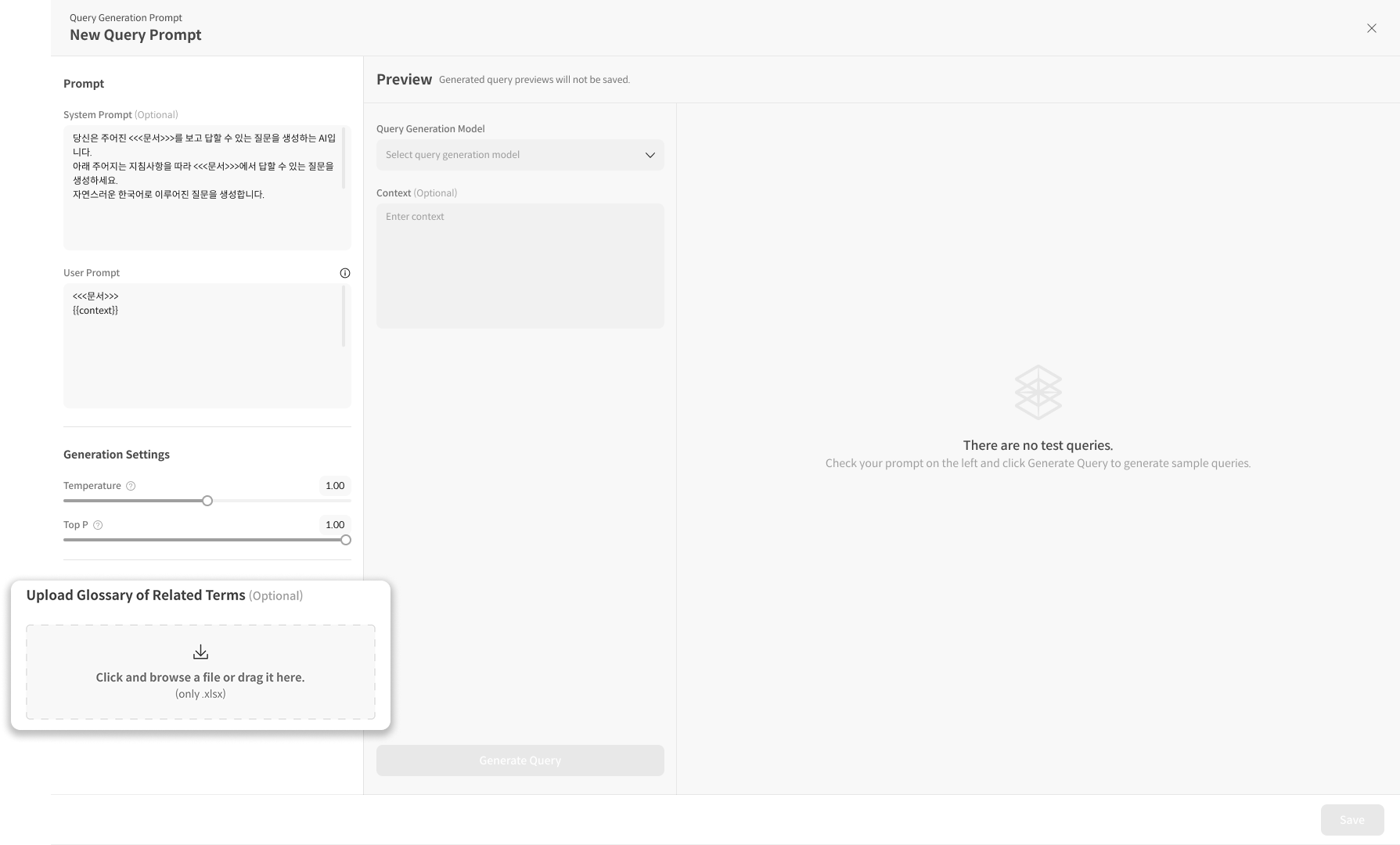 ① ‘+Query Generation Prompt’ 버튼 클릭