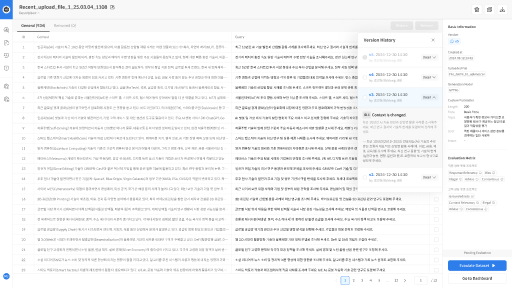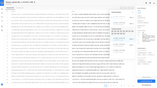When Edit or Remove actions are performed on a dataset, all changes are automatically saved and recorded as history. Users can compare the before and after versions of each item using its ID.